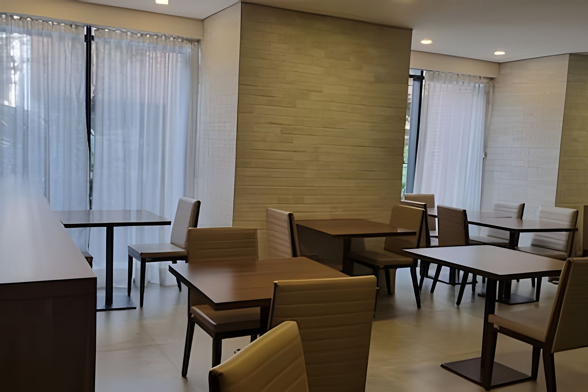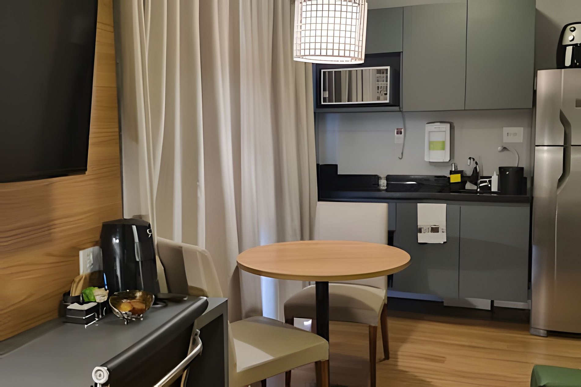 No térreo, além da recepção 24h, vc tem acesso a uma área de trabalho, lavanderia coletiva com máquina de lavar e secar (consulte na recepção os valores para utilização da lavanderia), uma área de conveniência com autoatendimento e uma cozinha coletiva.
