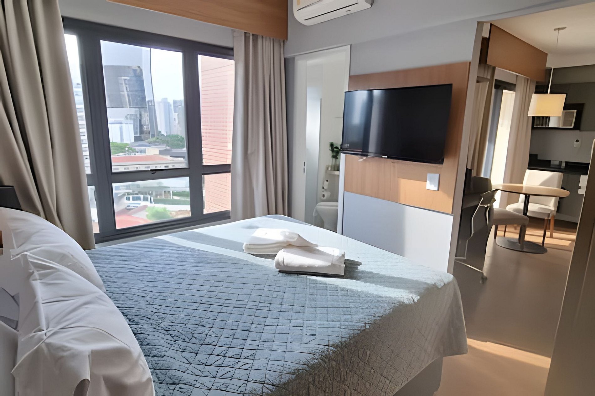Apartamento confortável, Piscina, Academia, Área de Trabalho, Sala de Reunião, Estacionamento incluso, chekin 24h e Lavanderia